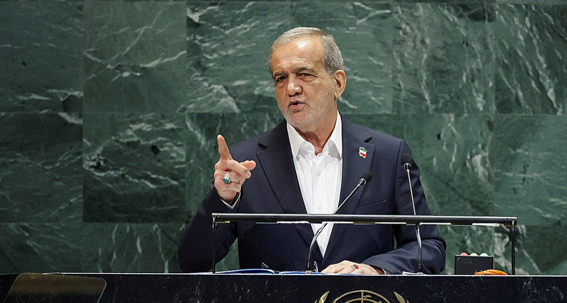 Iran’s President Masoud Pezeshkian addresses the 80th United Nations General Assembly at U.N. headquarters in New York on Sept. 24, 2025. (Jeenah Moon/Reuters)